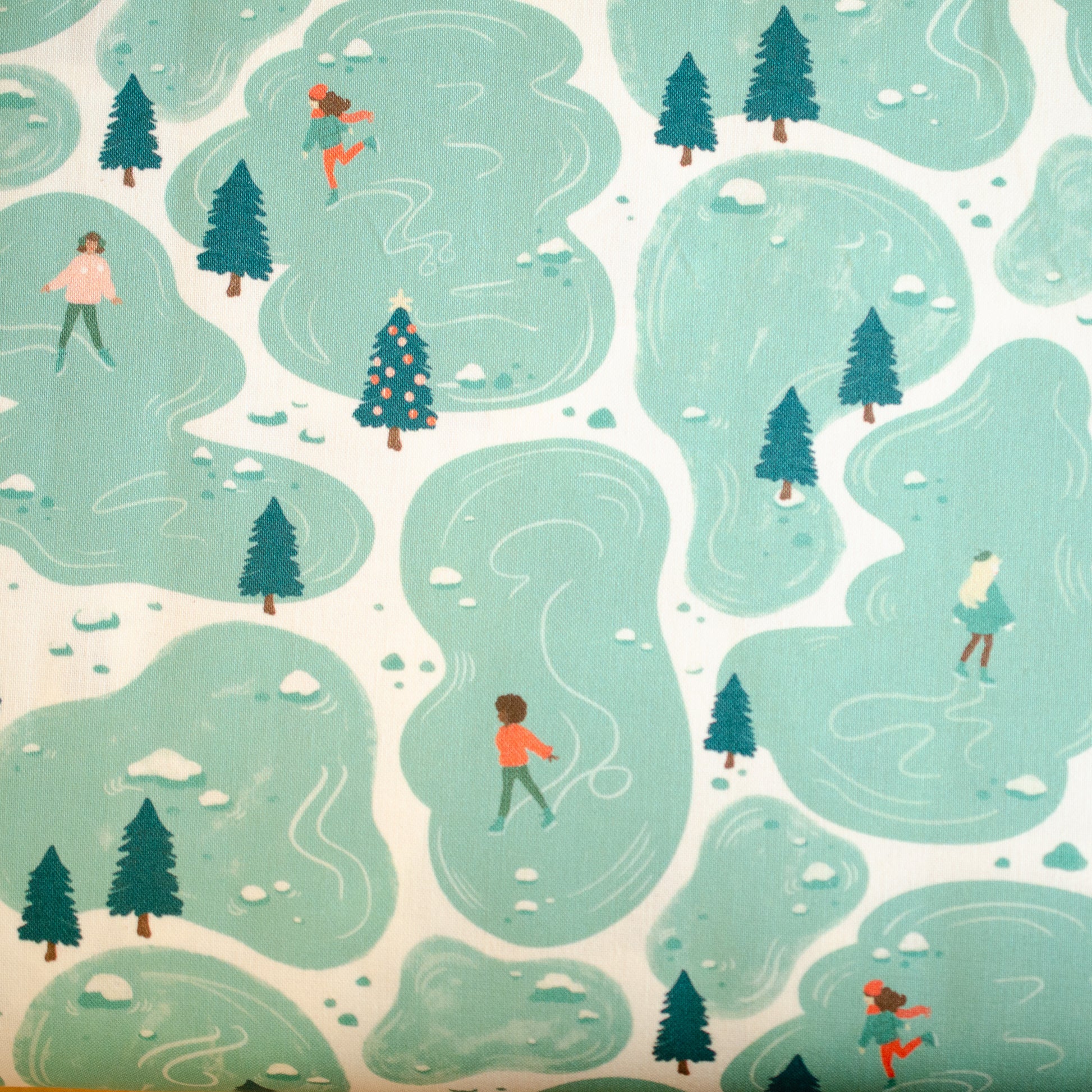 Capture winter wonder with this charming cotton fabric featuring a nostalgic ice skating scene. Great for cozy quilts, seasonal décor, and holiday crafts.