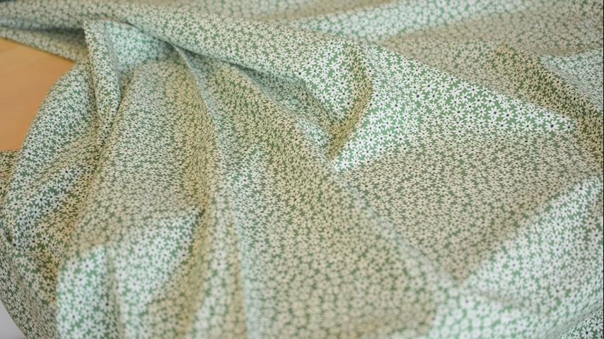 Video Listing: https://shopantiquaria.com/products/tiny-daisies-green-quilting-cotton-fabric