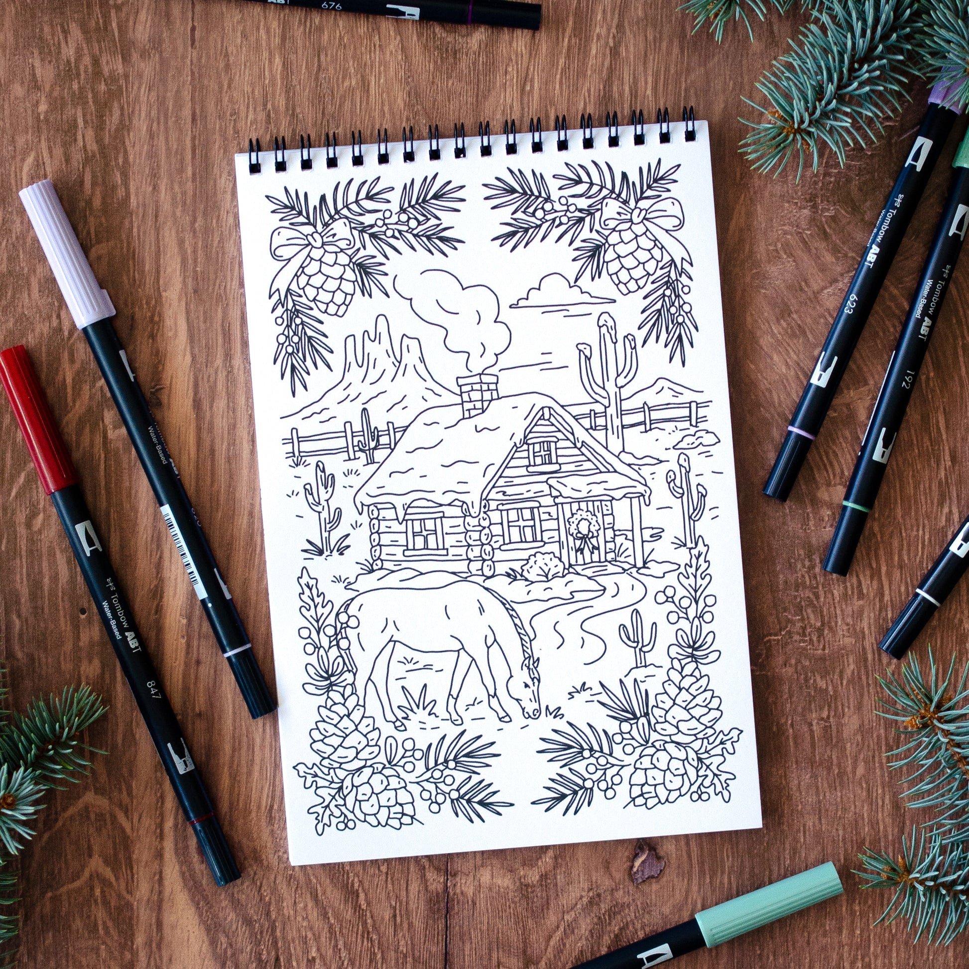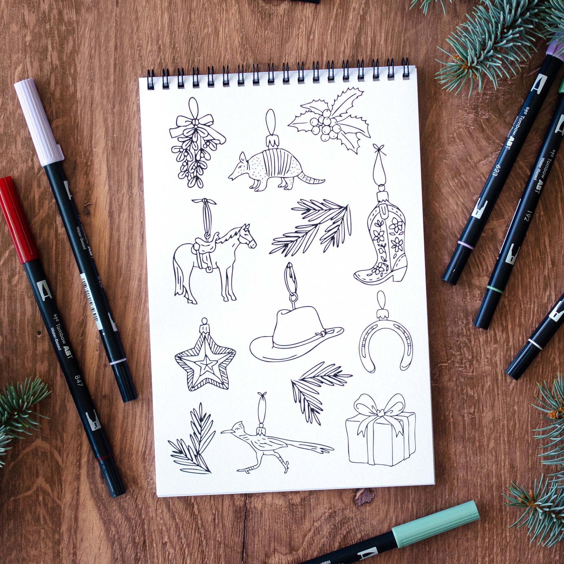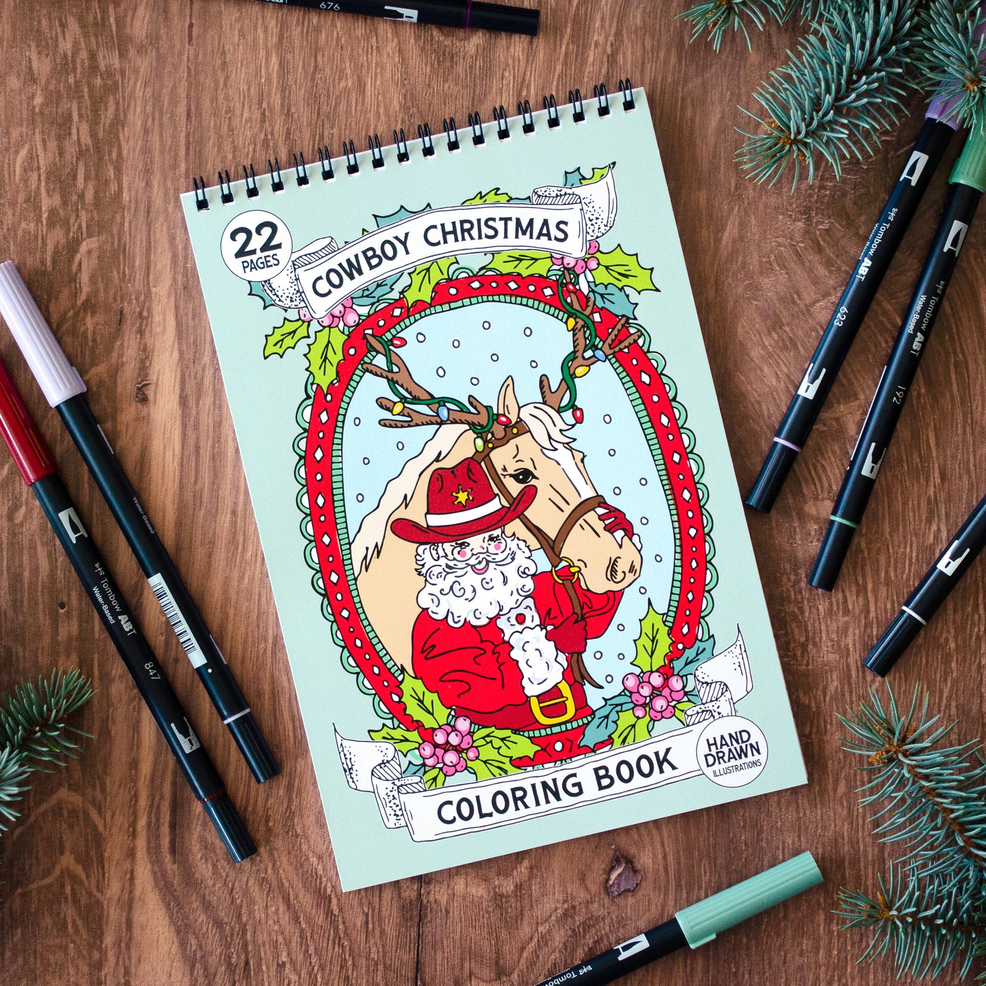 Get into the festive spirit with a western twist with our Cowboy Christmas Coloring Book! This unique collection of coloring pages combines festive cheer with rustic charm. Book includes 22 pages with 11 original cowboy-inspired holiday designs—each included twice so you can try out different color palettes or share with a friend.