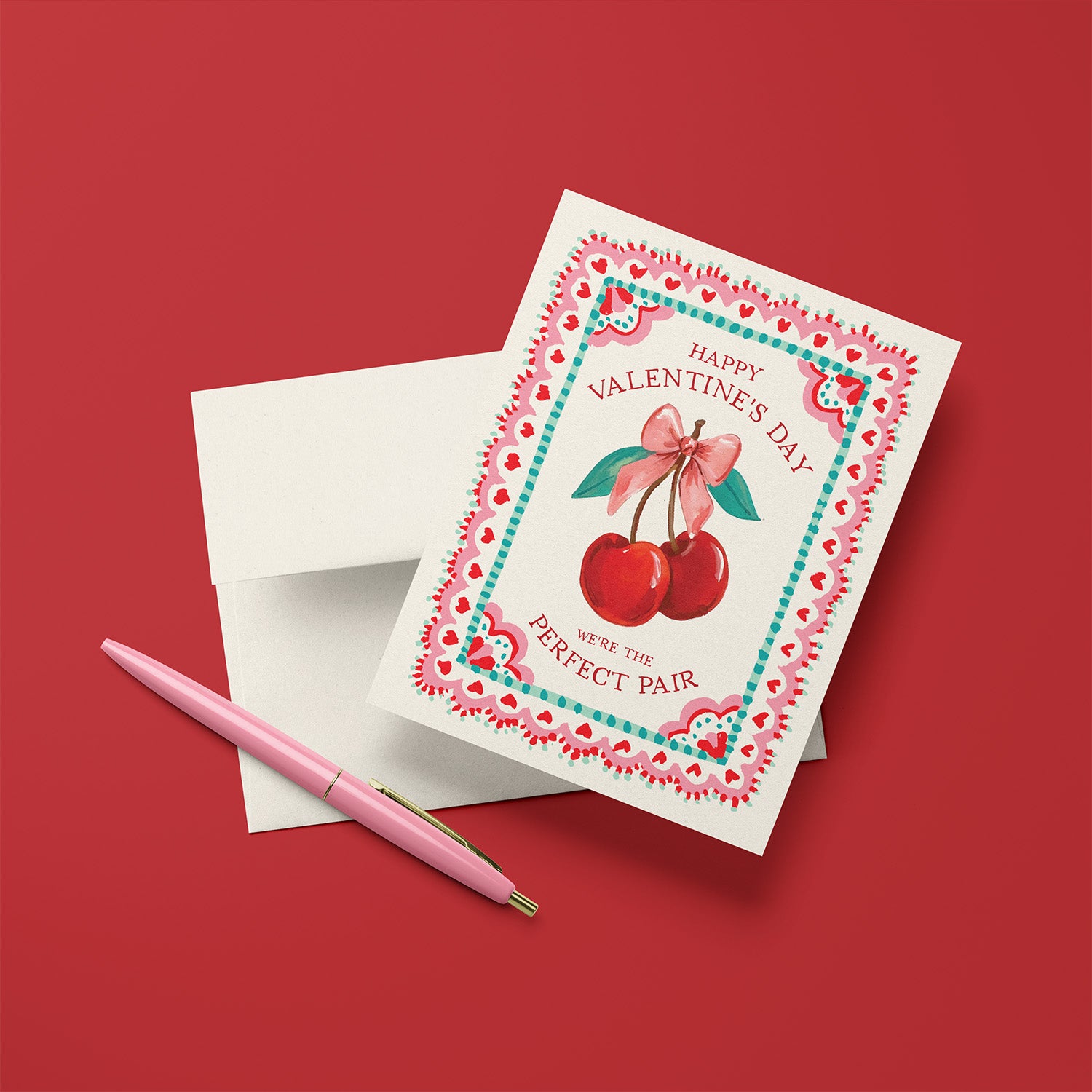 Our Cherries Valentine greeting card is the perfect blend of sweet and playful. Featuring two bright red and a perfect valentine message, this design is ideal for Valentine’s Day. Blank inside.