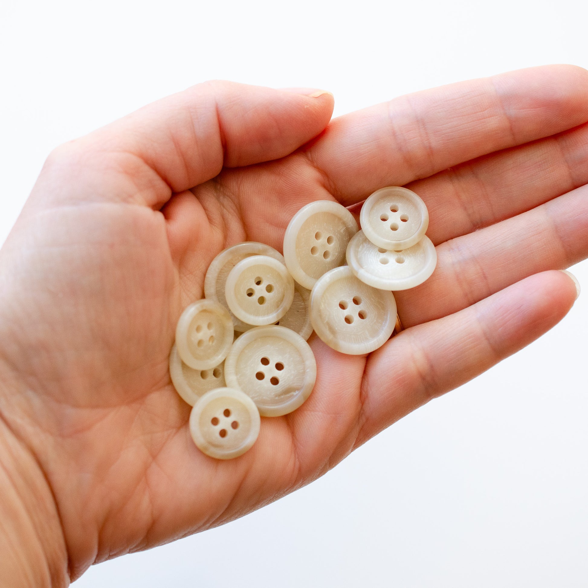 Beautiful cream and white “Trihorn” jacket buttons — hard-to-find, high-quality buttons with a matte center and semi-polished rim. Perfect for sewing, tailoring, or adding a refined touch to handmade garments.