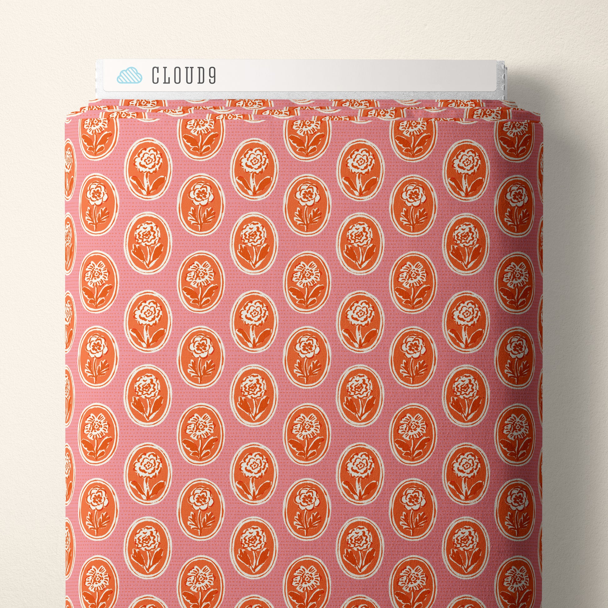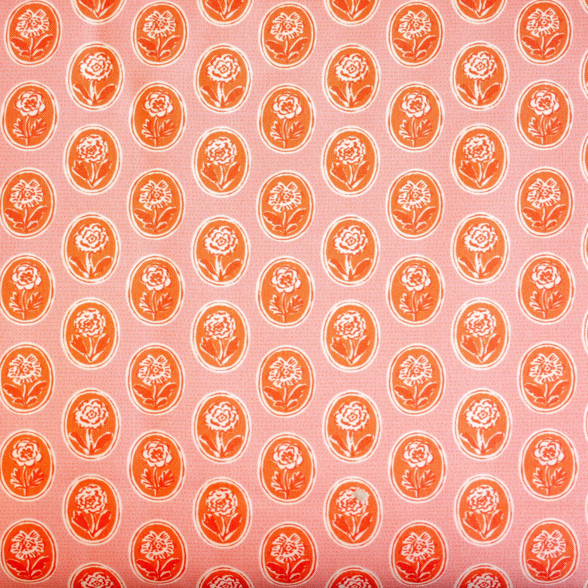 Delicate blooms in warm pink and orange tones dance across this soft 100% cotton quilting fabric. Ideal for floral quilts, cheerful home projects, and springtime sewing. Sold by the half yard and perfect for adding a fresh, feminine touch to any handmade piece.
