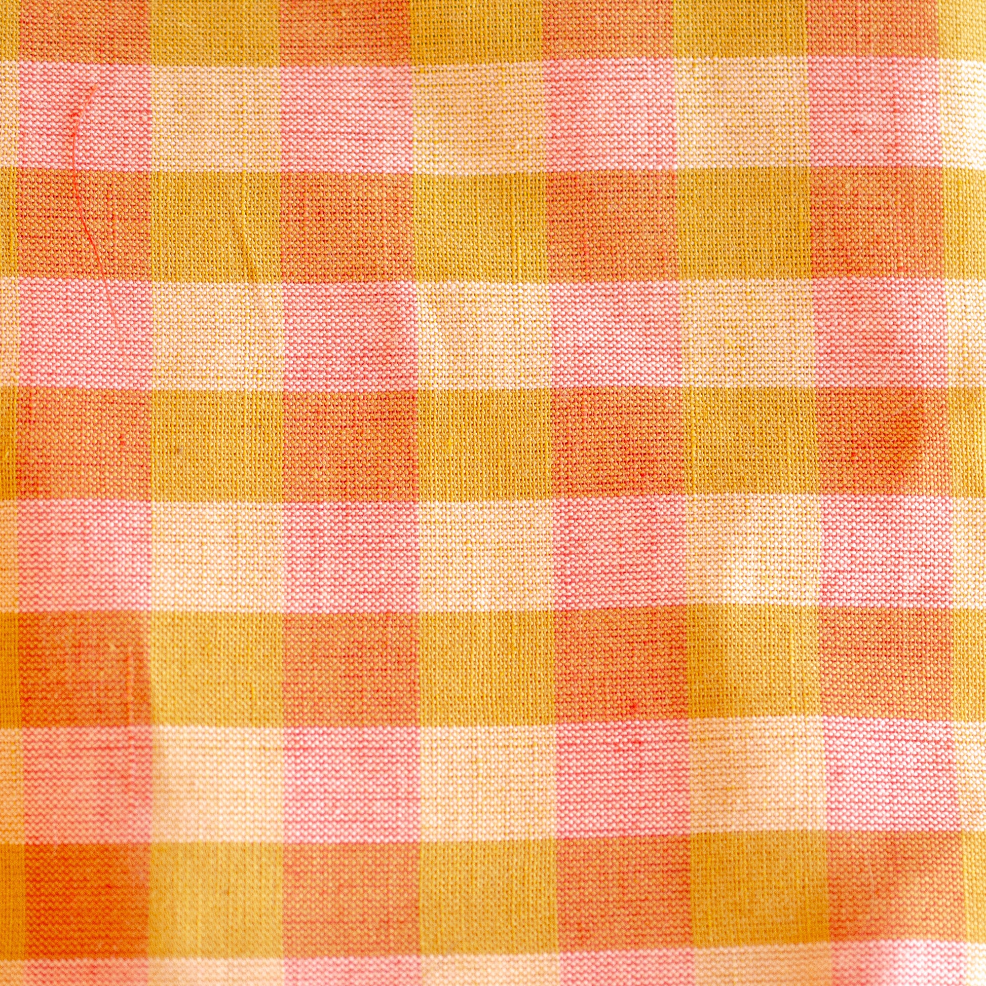 A soft cotton and linen blend in a cheery check of raspberry pink and mustard yellow. A versatile cloth that is a great alternative to linen. Summer weight cloth suitable for dresses, tops, shirts and skirts.