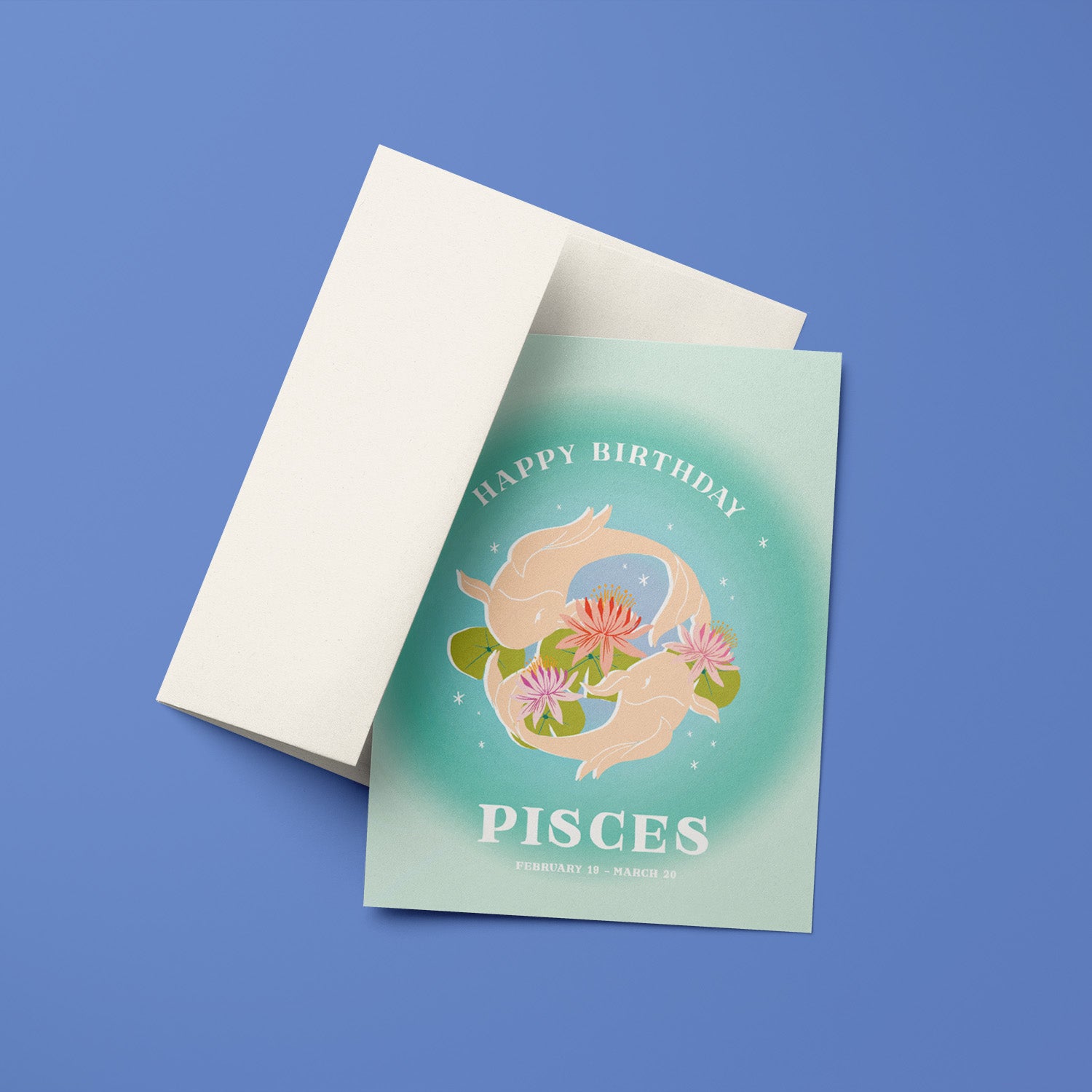 This colorful birthday card features the zodiac symbol for Pisces. Making it a fun way to tell the artistic Pisces in your life “Happy Birthday”! Pisces are born between February 19 and March 20 and are extremely artistic, creative, and compassionate people! A2 Folded Card (4.25"x5.5") | Full Color | Blank Interior | Cream Envelope | Made in the USA ©Antiquaria 2023